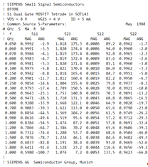 S параметры модели разработаны компанией SIEMENS AG Semiconductor Group, таблица2.2.2.