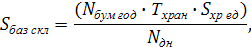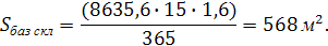Т хран - срок хранения, дни (15 дней),хр ед - площадь, отводимая для хранения 1 тонны груза на базисном складе, - 1,6 м2,дн - количество календарных дней в году.