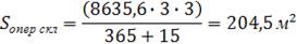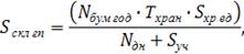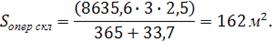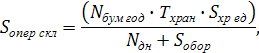 Т хран - срок хранения, дни (3 дня),хр ед - площадь, отводимая для хранения 1 тонны груза на операционном складе, - 2,5 м2,дн - количество календарных дней в году,обор - площадь, занимаемая оборудованием (бумагорезальная машина), рассчитанная с учетом кубарного коэффициента.