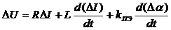 С учетом индуктивности обмотки управления и электродвижущей силы, наведённой движением якоря, система уравнений движения электромеханического преобразователя в приращениях приобретает такой вид: