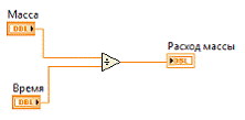 ВП преобразует значение массы (кг) и время (с) в массовый расход (кг/с) (G=m/t) |