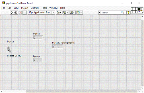 . Поместил два цифровых элемента управления на лицевую панель. В поле собственных меток элемента управления печатаем «Масса» и «Время».