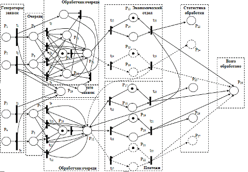 построить сеть Петри изучаемой СМО.