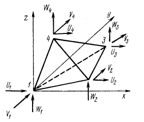 Тетраедний скінчений елемент для просторової задачі являється