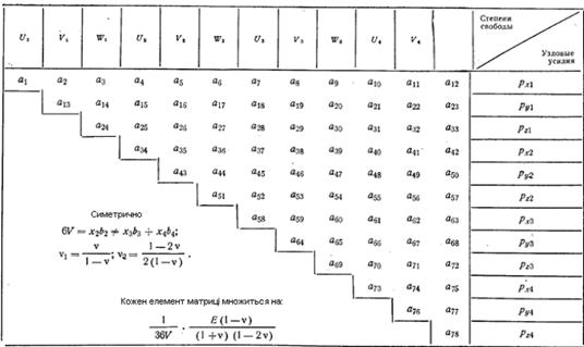 − компоненти матриці жорсткості і вектора зовнішніх