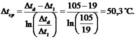 Середня логарифмічна різниця температур теплоносіїв: