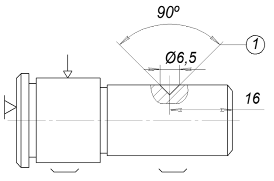 Установ Б. Повернуть деталь на 180°. Засверлить отверстие Ø6,5, выдерживая угол 90°и размер 16 мм. Эскиз к этим операциям представлен на рисунке 15.