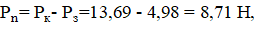 силе Рк по формуле (3.12), Н: