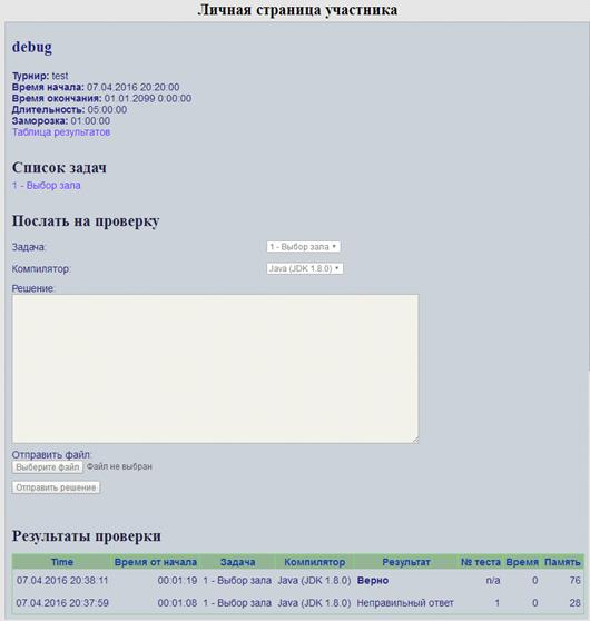· Формирование турнирной таблицы с учетом запроса участника олимпиады на вывод детализированного отчета по результату проверки задачи.
