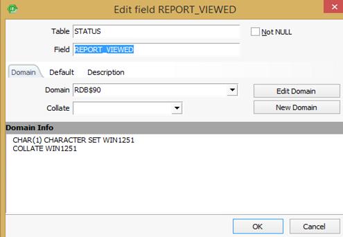 В таблицу STATUS добавить новое поле REPORT_VIEWED, тип CHAR(1).