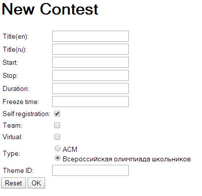 Данная форма поддерживает только один тип турнира - ACM, потребуются