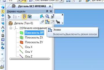 Нажимаем элемент «Эскиз». Потом мы начинаем создание эскиза детали. Разберём создание детали на примере детали «Прижим», входящую в данную ВКР.