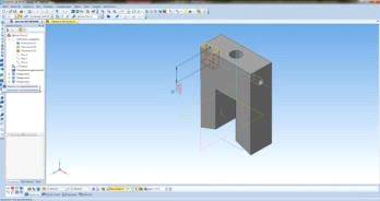 резьбой. Глубиной 15 мм. На боковых плоскостях детали «Прижим». После нажимаем