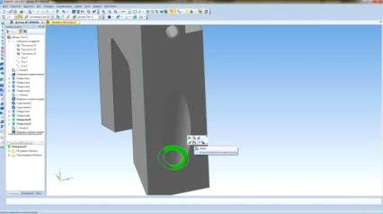 12. Для этого выбираем нижнюю поверхность отверстия, как показано на рисунке