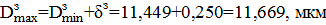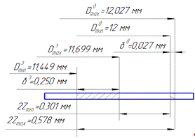 Рассчитаем минимальные и максимальные диаметры для детали и заготовки.