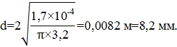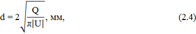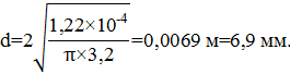 Внутренний диаметр трубопровода определяем по