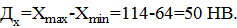 Определяем величины разбросов твердости: