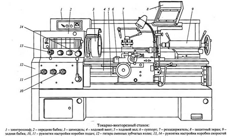 передняя и задняя бабки, • суппорт, • шкаф с электрооборудованием.