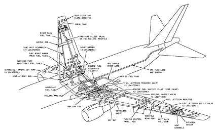 Заправочные коллектор от заправочной станции проходит до заднего лонжерона и далее, проходит по всей длине крыльевых баков. Заправочные горловины обеспечивают поступление топлива в коллектор. Заправочный коллектор является частью заправочной системы. Дренажный клапан установлен на заправочном коллекторе в левом и правом центральном отсеке центрального бака.