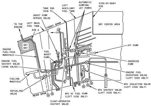 Как и в крыльевых баках, центральный бак тоже имеет сухой отсек, расположенный