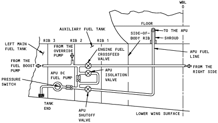 давлением к двигателям и вспомогательной силовой установки. Система питания