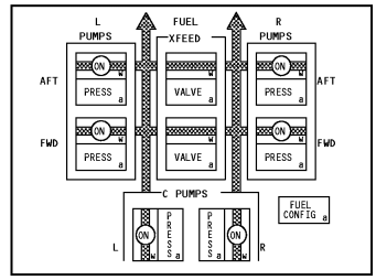 Давление в топливной системе обеспечивается двумя подкачивающими электрическими насосами 115В. 400Гц. 3фазы установленными в одном корпусе. Расположены насосы по одному в каждом крыльевом баке. Два подкачивающих насоса 115В. 400Гц. 3 фазы, установлены в центральном баке, левой и правой секции. Производительность насоса 13 600 килограмм в час, минимальное давление 15psi. Подкачивающие насосы центрального бака питают соответственно левую и правую подсистемы, и создают давление выше чем давление подкачивающих насосов крыльевых баков. Что позволяют в первую очередь выработать топливо центрального бака.
