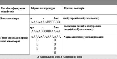 амфіфільних кополімерів, що мають гідрофільний блок і гідрофобний блок . Будова