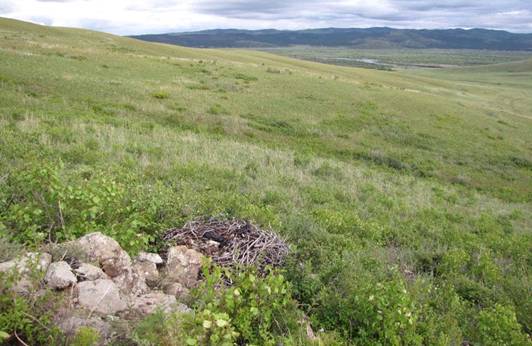 Рисунок 4. а - гнездо степного орла в Даурии, 2010 г.; б -