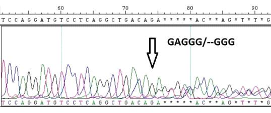 Рисунок 10. Хроматограмма с двухбуквенной инсерцией в гетерозиготе.