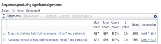 соответствовала последовательности этого участка у черного грифа (Aegypius