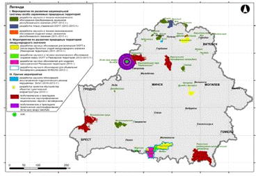 В последнее десятилетие нами составлены крупномасштабные карты растительности практически для всех крупнейших объектов природно-заповедного фонда страны, а также 30 км зоны БелАЭС и других природных территорий (рисунок 6). При их составлении использовались, как правило, традиционная доминантная классификация и структурно-динамические принципы построения легенды.