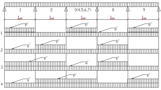 Статический расчет плиты начинается с установления расчетной схемы и подсчета нагрузок. При расчете из перекрытия мысленно условно вырезается (перпендикулярно второстепенным балкам) полоса шириной один метр, которая рассматривается как многопролетная неразрезная балка, несущая постоянную и временную (полезную) нагрузки.