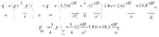 где g* = gb и p* = pb - соответственно постоянная и временная расчетные нагрузки, подсчитаны с учетом коэффициентов перегрузки, действующие на 1 п. м. балки шириной b = 1 м:* = 3,756 кН/м; p* = 12 кН/м’ = 10,432 кН/м; p’ = 6 кН/м.