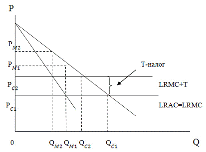 Рис 2.3. Реакция монополии на налогообложение