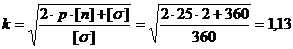 де k - відношення зовнішнього і внутрішнього діаметрів;