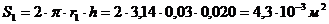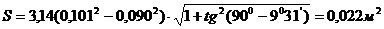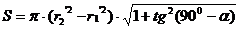 Визначаємо площу повної контактної поверхні конуса