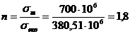 Визначаємо коефіцієнт запасу міцності: