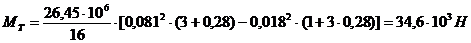 де Рн - максимальний тиск насоса, МПа;В - діаметр циліндрової втулки, м;- довжина поверхні контакту ущільнення поршня з циліндровою втулкою, b=0,045 м;- коефіцієнт тертя між манжетою поршня та циліндровою втулкою, f = 0,15.