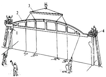 контролируют путем совмещения соответствующих рисок. Для строповки ферм
