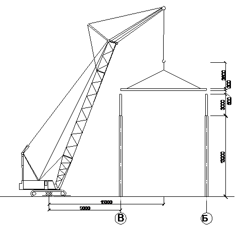 Укладка в одноэтажных зданиях стропильных ферм при длине плит покрытий до 12м, пролетом до 18м, массой до 15 т и высоте здания до 25м. |