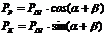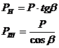 силу, действующую по оси шатуна, так же раскладывают на две составляющие: