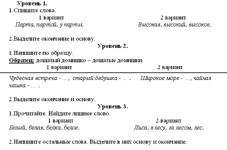овладения учащимися знаниями и умениями из области состава слова. Для оценки