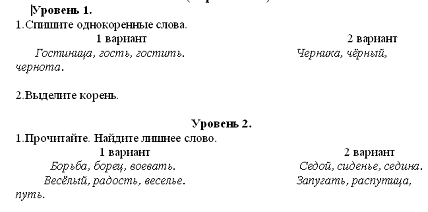 Для определения уровня словообразовательных умений младших школьников и для оценки сформированности у них словообразовательных понятий четвероклассникам были предложены некоторые задания.
