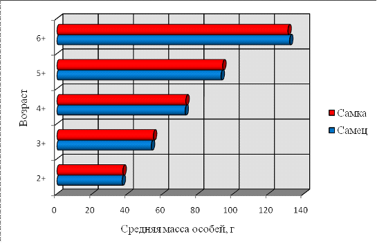 и самцов. Соотношение средней массы в каждой возрастной группе не сильно