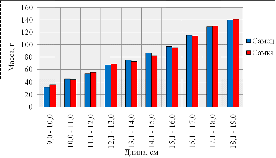 1,4 см, что возможно связано с активным нерестом. Из этого можно сделать