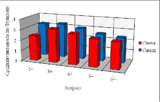 самок и самцов меняется в зависимости от возраста. У трехлеток идет