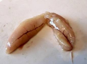 При изучении плодовитости самок было измерен диаметр икринок, масса икры и подсчитано количество икры на 1 г. Внешний вид гонад самки донского ерша представлен на рисунке 14.