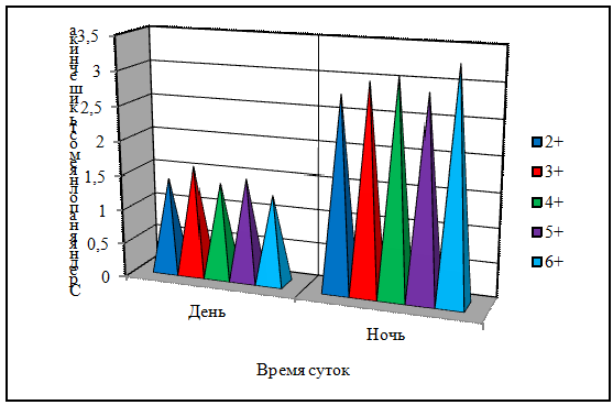Из данного графика можно отметить, что литературные данные подтверждаются. Донской ерш питается в темное время суток. В уловах днем наполняемость кишечника встречалась в единственном экземпляре, но были и исключения.