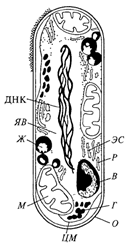 система; Р - рибосомы; В - волютин; Г - гликоген
