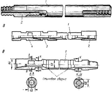 Переходники служат для соединения отдельных элементов бурового снаряда, отличающихся по диаметру или резьбе. Они изготавливаются из стали марки 45 и 50 и выпускаются 2 видов - фрезерные и тройные.